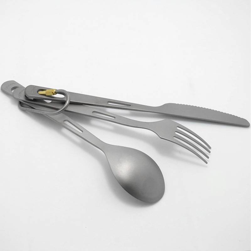 3 в 1 Титановая Ложка вилка, нож, столовые приборы, наборы с титановым карабином, походные столовые приборы, уличная Посуда Spork