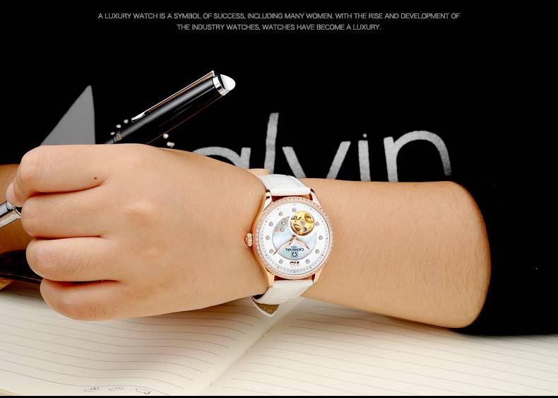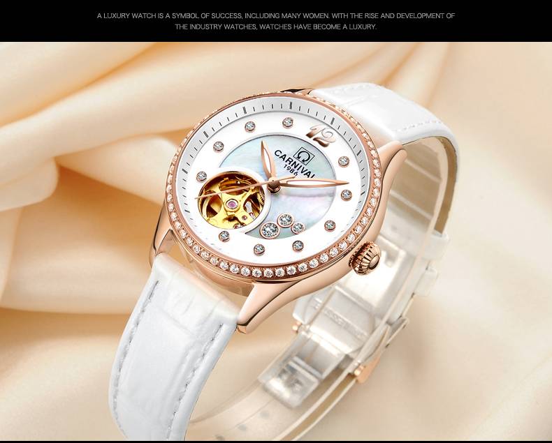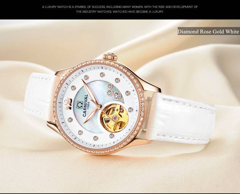 Карнавальный бренд модные часы розового золота для женщин модные механические часы водонепроницаемые светящиеся полые часы Relogio Feminino