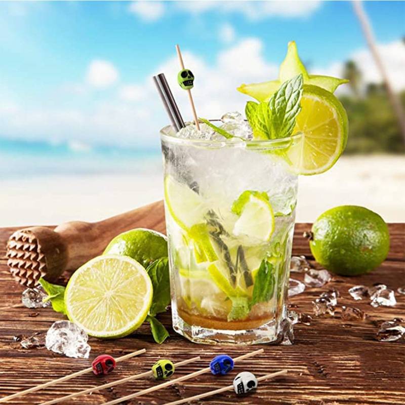 50PCS/Pack Disposable Skull Bamboo Stick Party Buffet Fruit Picks Sandwich Appetizer Desserts Food Cocktail Bamboo Stick