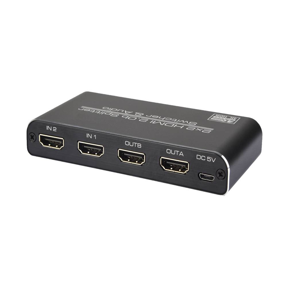 HDMI 2*2 с поддержкой 4Kp60, который позволяет HDMI сигнал из любого из его 2 источников быть направленным и отображаться на любом из двух подключенных HDMI дисплеев одновременно. Он поддерживает 3D, 18 Гбит/с, 24-битный глубокий Цвет, высокой четкости без потери качества звука и другие особенности определяется HDMI техническими характеристиками. Управление сценариями source sink можно легко управлять с помощью кнопок на панели, ИК-пульта дистанционного управления.