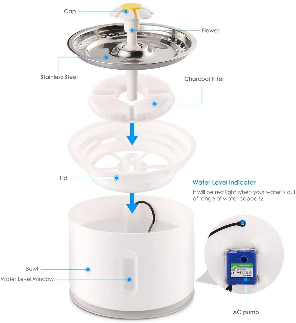 Для этого питомец фонтана, насос с функцией автоматического отключения питания, когда контейнер низкий или не хватает воды, он автоматически отключится, чтобы защитить насос, продлевает срок службы насоса.