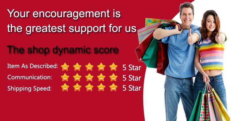 Большое спасибо за посещение нашего магазина. Если у вас есть какие-либо вопросы или вы не удовлетворены продуктом, пожалуйста, сначала свяжитесь с нами, мы дадим вам удовлетворительный ответ. Пожалуйста, дайте нам шанс, чтобы мы могли сделать для вас. Если вы удовлетворены нашими продуктами, пожалуйста, поставьте нам пять звезд и положительотзывы в. Ваши комментарии важны для нас, желаю вам приятных покупок, ждем вас снова. Спасибо!