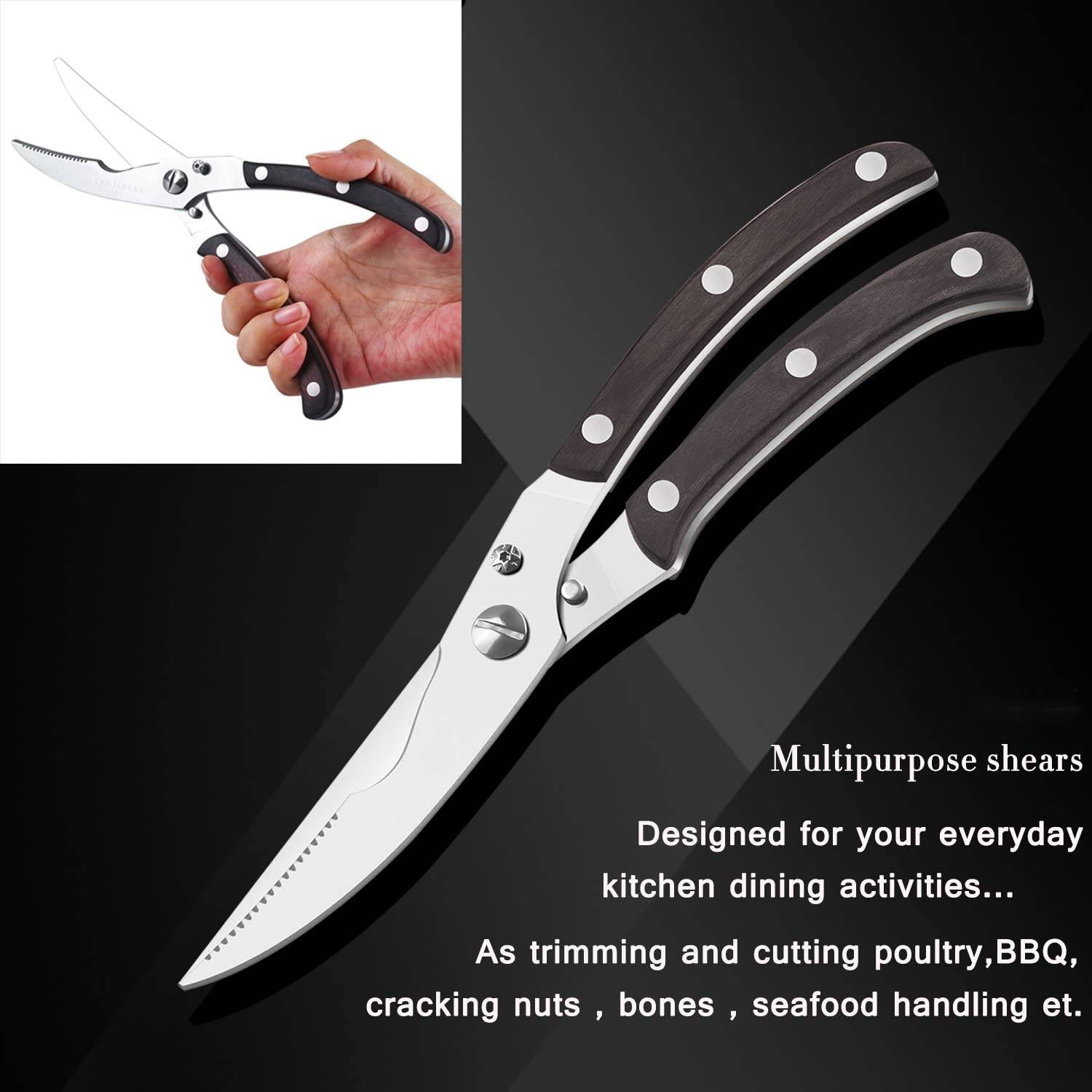 Кухонные ножницы-сверхпрочные Подпружиненные кухонные ножницы из нержавеющей стали, хорошие захваты, многоцелевые ножницы для птицы с нескользящей ручкой и безопасным штифтом