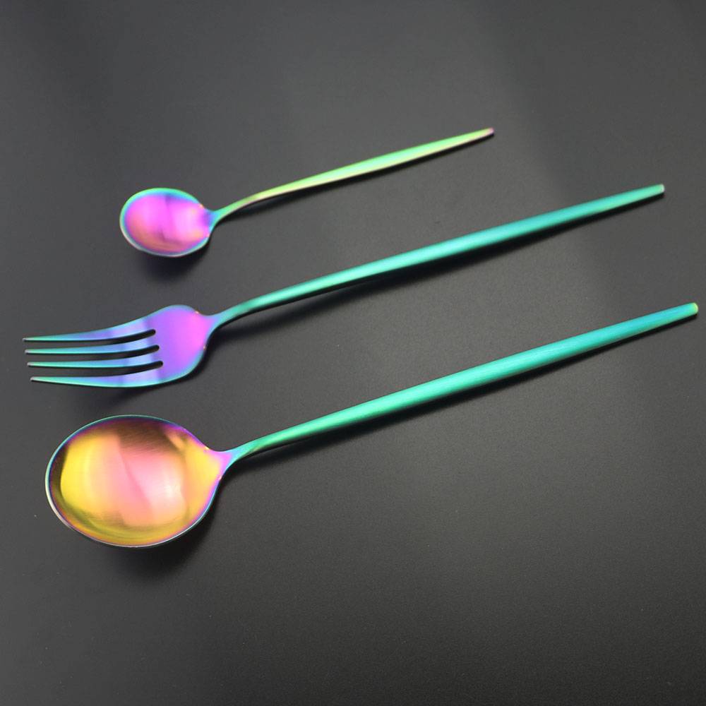 Экологически чистые столовые приборы высокого качества Материал: изготовлен из нержавеющей стали 304, который является безопасным и прочным. Они устойчивы к коррозии и коррозии, сохраняют роскошь матовой в течение длительного времени.