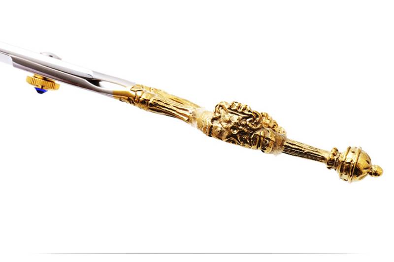 Нержавеющая сталь гладкая полировка 6-дюймовый с высоким уровнем Класс золотая ручка в форме короны на плоской подошве режущих зубьев для резки Нержавеющая сталь парикмахерского салона