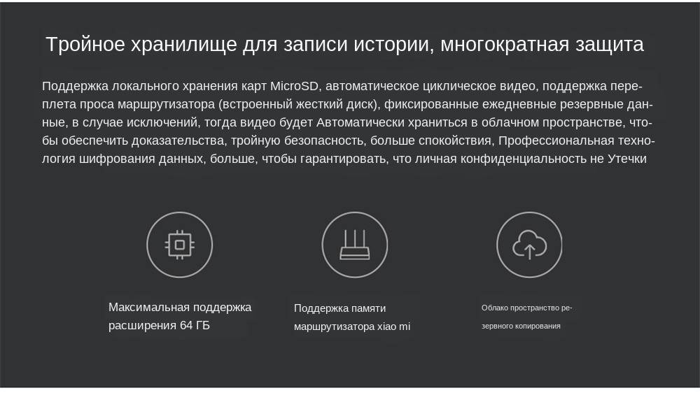 Параметры Цвет: белый Вилка: ЕС/США/Великобритания/Австралия Размер: 101*66*62 мм Угол объектива: 110 ° Разрешение: 1080p Фокусное расстояние: 3,9 мм Рабочая температура:-10 ℃ ~ 50 ℃ Беспроводные соединения: Wi-Fi IEEE 802.11b/n 2,4 ГГц Функция памяти: Micro SD (максимальная поддержка 64 Гб)-не входит в комплект Поддерживающая система: Android 4,4/IOS9.0 и выше Особенности Плавающие окна приложения, удобные для просмотра Поддержка max.64G micro SD карты (не входят в комплект), также поддержка облачного хранения NAS Поддержка ночного видения, ИК расстояние до 9 м с 6 светодиодами ИК-подсветкой Поддержка Wi-Fi подключения, 10 м Пульт дистанционного управления Посылка включает в себя 1 x Xiaomi Камера Руководство пользователя (1 шт.) 1 x Мощность линии 1 x Стикеры 5001004