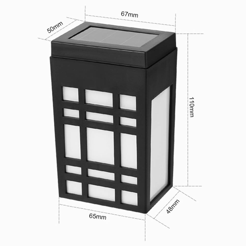 Спецификация: Материал: пластик Цвет: теплый белый светодиодный светильник-1 шт. Батарея: AA 1,2 V/200mAH Ni-MH аккумулятор Солнечная панель: 2 в/40 мАч Аморфный кремний Размер: 110X65X50 мм/4,33X2,56X1,97" Цвет: черный Время зарядки: Солнечный свет около 6-8 часов Время освещения: весна-лето 8-10 ч/осень-зима 6-8 ч Область установки: сад/патио/проход/вилла/открытый, что прямых солнечных лучей Примечание: 1. Из-за различных эффектов монитора и светильник фактический цвет изделия может значительно отличаться от цвета, показанного на фотографиях. Спасибо! 2. Возможны отклонения в 1-3 мм вследствие измерений вручную.
