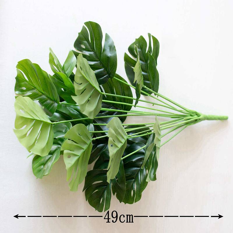 1 букет/18 листьев, искусственные растения, Зеленые пальмовые листья, монстера, украшение для дома, сада, балкона, Тропическое пластиковое искусственное растение