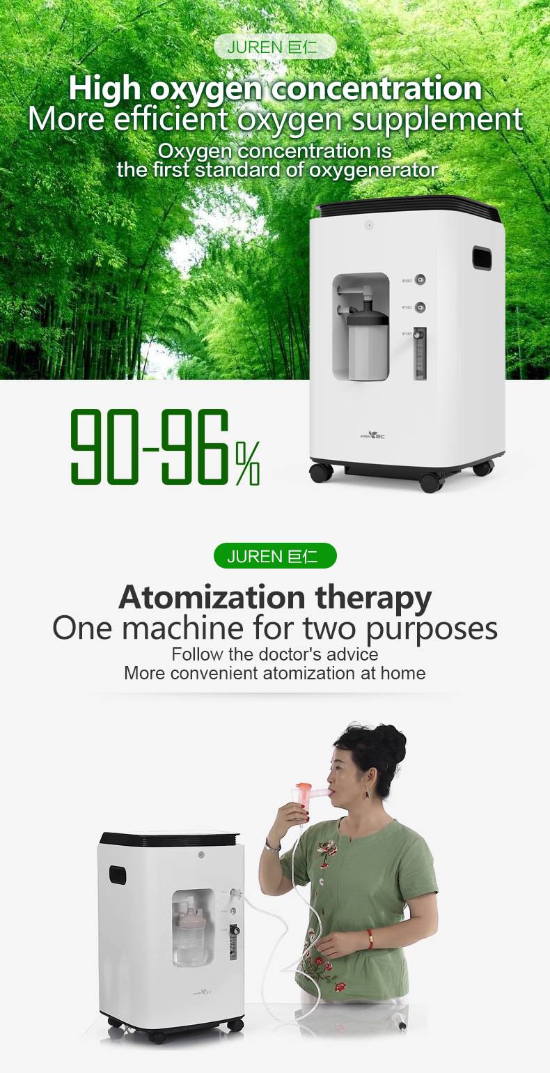 Особенности: Он может обеспечить кислород для двух людей одновременно; Также имеет функцию распыления; Это дизайн сенсорного экрана и пульт дистанционного управления, прост и удобен в использовании; Дизайн с шумоподавлением, только 50 дБ, когда он работает; При регулировании потока кислорода до 5 л, концентрация кислорода все еще выше 93% Профессиональные медицинские стандарты Может работать непрерывно более 48 часов Характеристики: Шум при беге: ≤ 60 дБ Содержание кислорода: 35-96% Размер изделия: 34*32*53 см Напряжение: AC110-220 ± 22V50Hz Вес: 21 кг Посылка включает в себя: 1 * кислородная машина, 1 * кислородная труба, 1 * распылитель, 1 набор фильтров