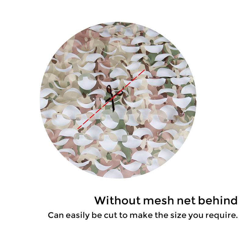 Название продукта: камуфляжная сетка Материал: 190T матовая эластичная полиэфирная пряжа Цвет: CP Размеры: прибл. 1,5 м Ширина Применимая температура: -40 ℃-50 ℃ Длина использования: 2 года на открытом воздухе.