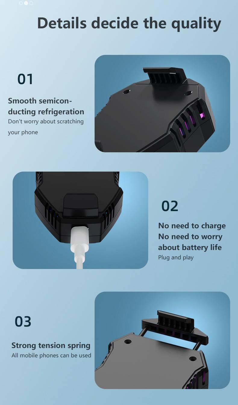 Улучшенное охлаждение уменьшает в 30 раз быстрое охлаждение, эффект использования ледяных зажимов замечательный, и мобильный телефон не горячий сразу.