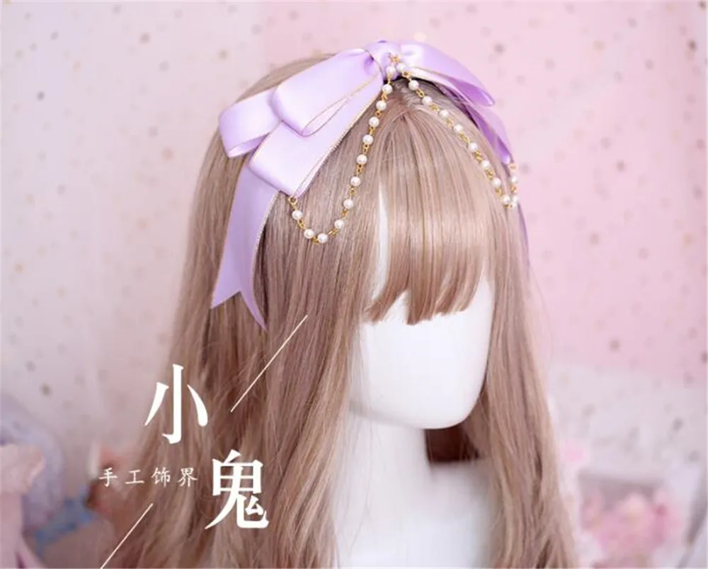 Ручная работа, мягкая японская жемчужная цепь для головы KC, повязка для головы, милая Лолита, бант, застежка для волос, головной убор, аксессуары для косплея горничной B522