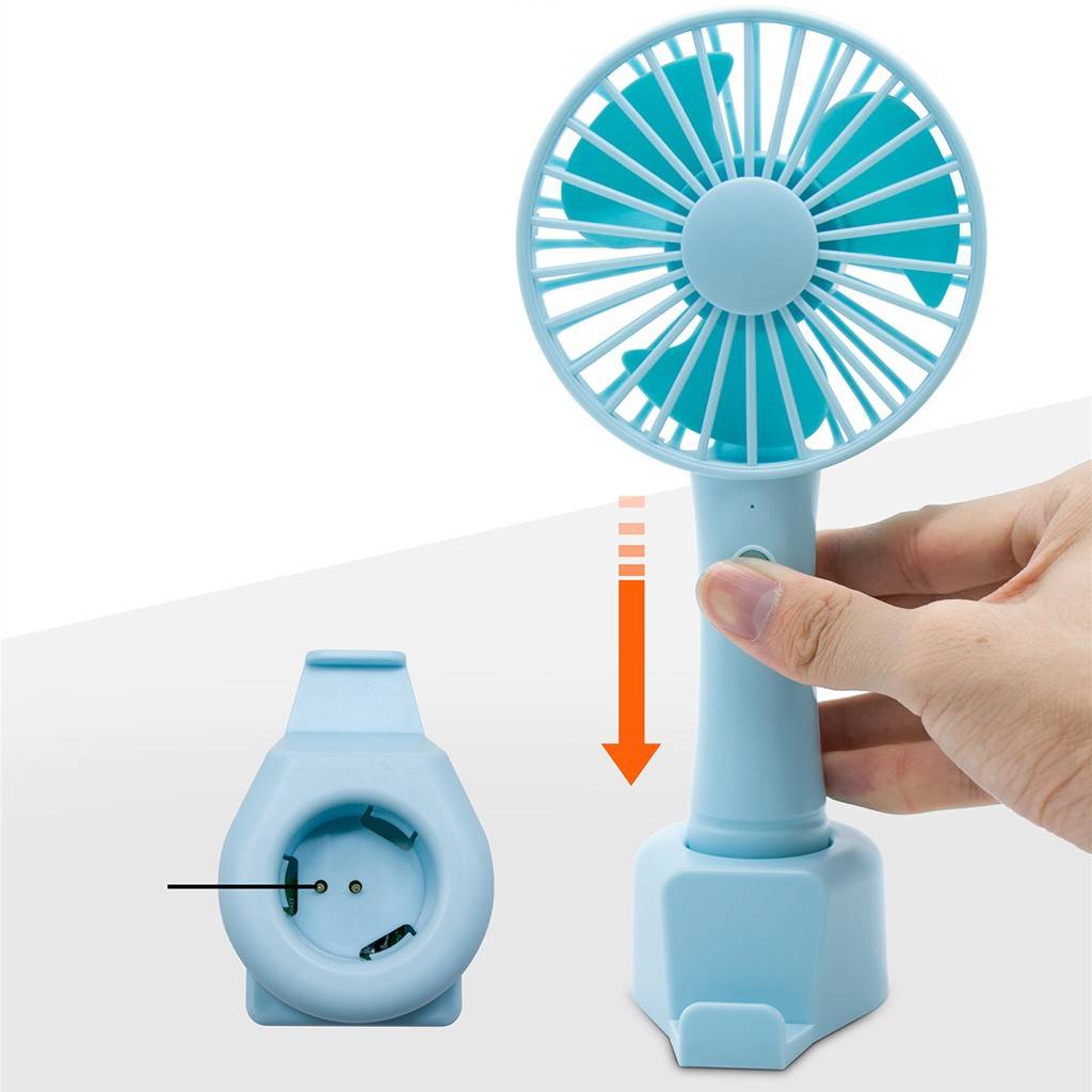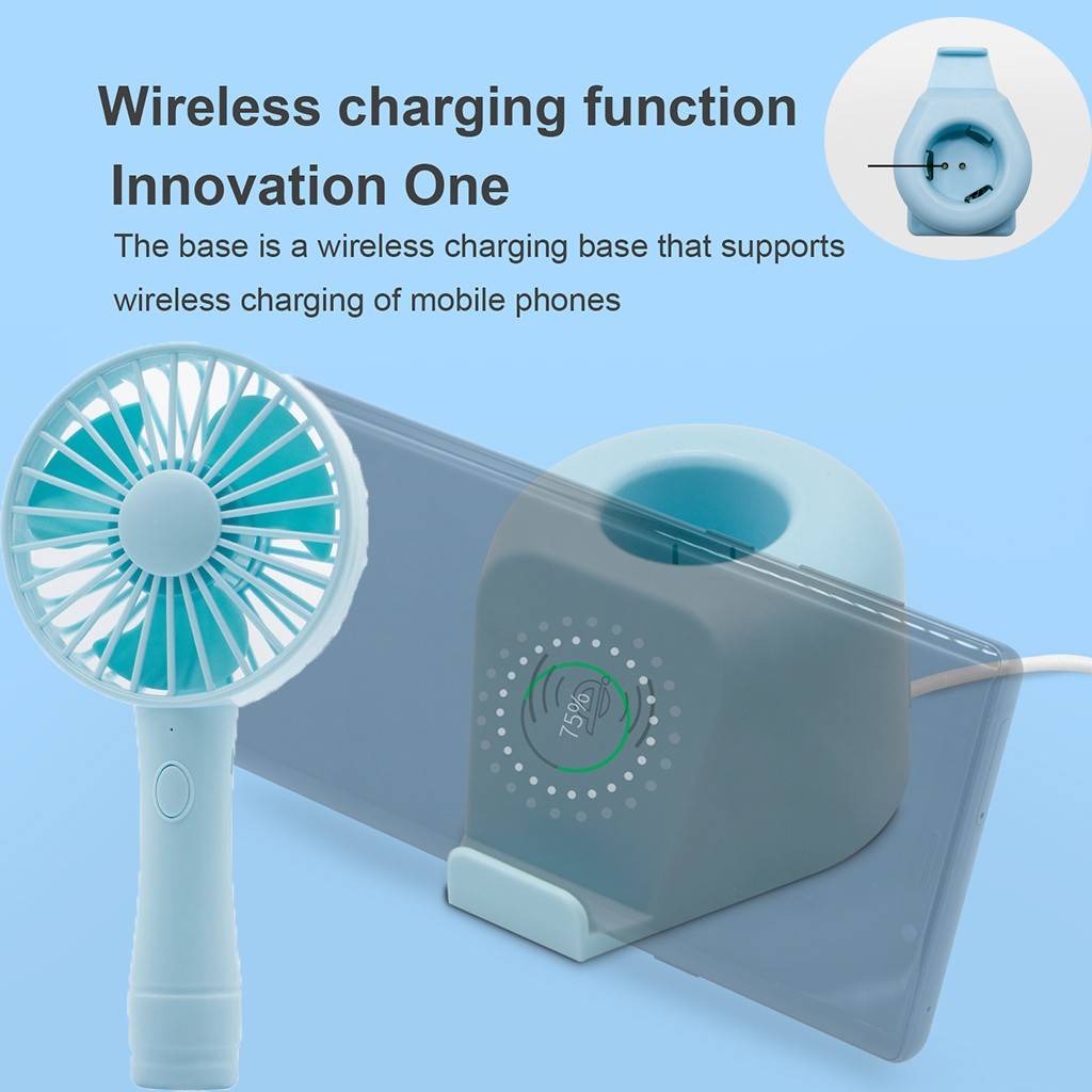 Wireless charging of fan, small hand-held fan inserted into the base for direct charging