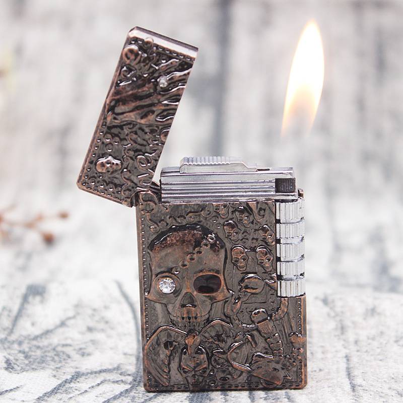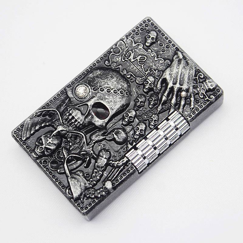 Фонарь Бесплатная череп кремень зажигалка бутан Turbo металла газовая зажигалка с питанием от прикуривателя с пожарной пинг яркий звук шлифовального круга зажигалка