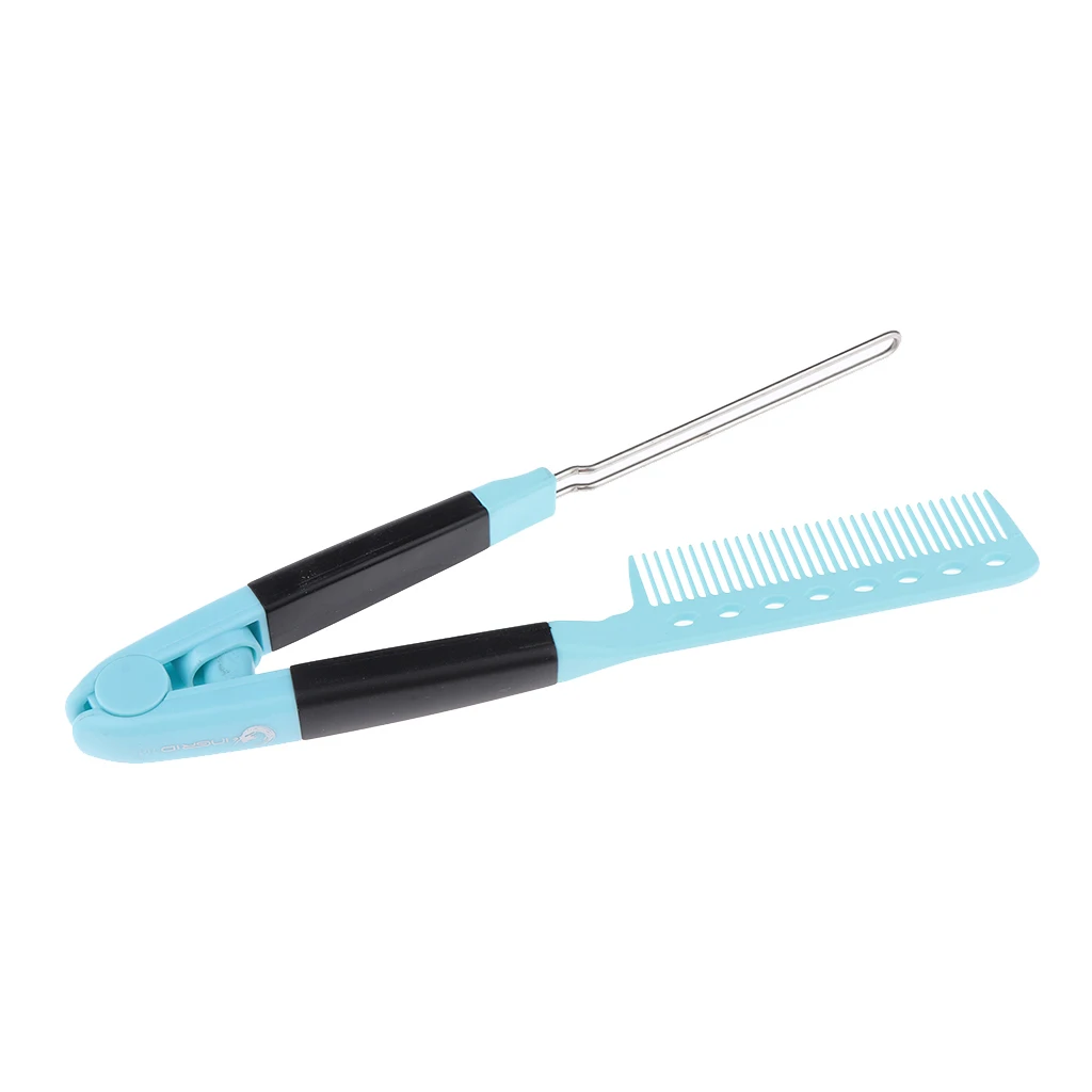 V-образная щетка для выпрямления волос с металлическим круглым зажимом.