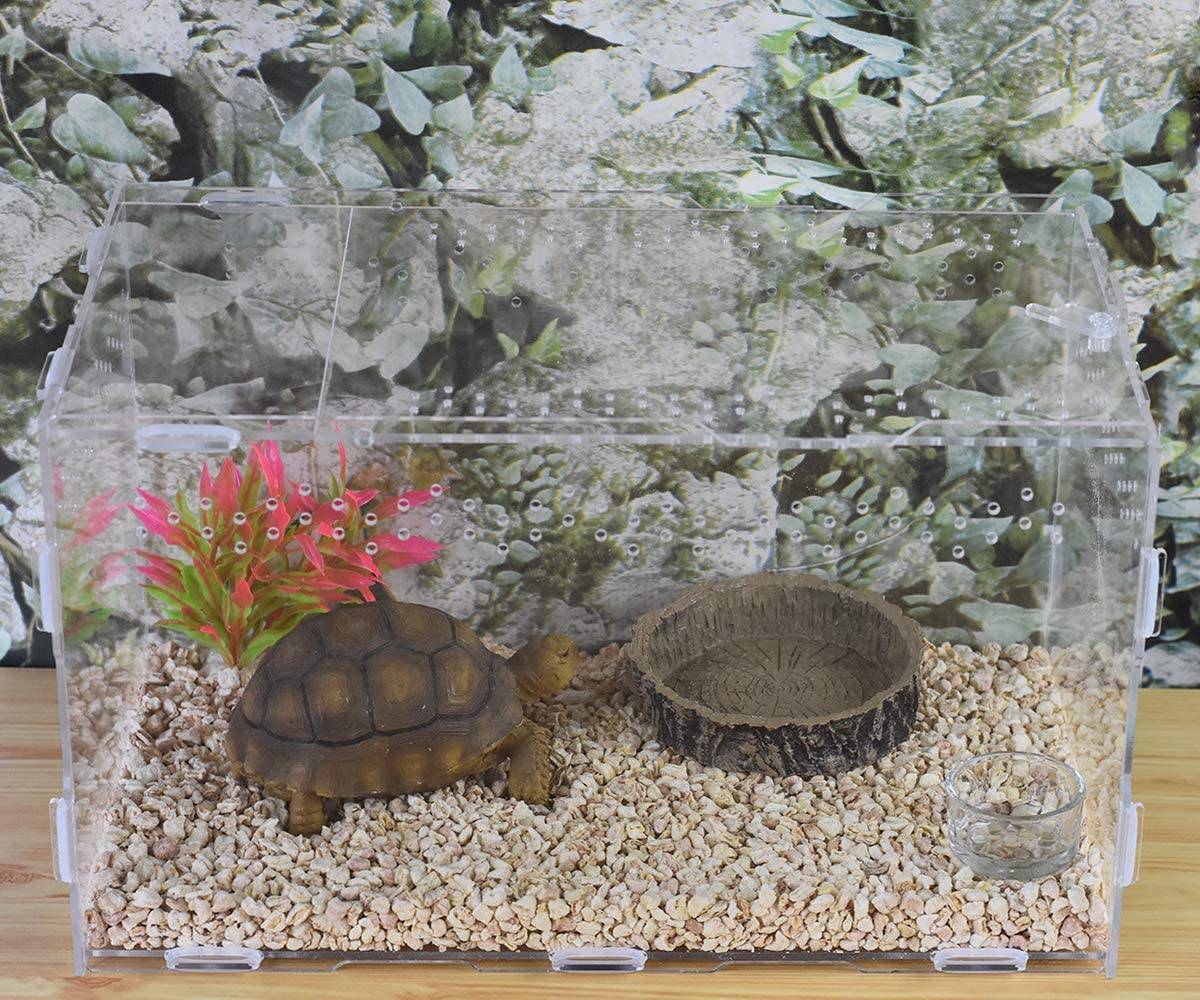 PET RESTAURANT: Very friendly to the small pet, such as especially the young turtle, your pet will love it. SUITABLE FOR: small reptile animals, like turtle, tortoise, hermit crabs, lizard, frog, terrapin, gecko,etc. RESIN DISH: Resin is high quality for durable use, anti-skip and easy to clean. STURDY: Its sturdy structure can effectively prevent it from overthrow and spill. NOTES AND TIPS: Before you place an order, please check our size image to know the pet dish size, we have clearly display the size for your reference. Material:Resin Size:diameter 4inch, high 1inch Package include: 1pcs* Pet Feeding Bowl