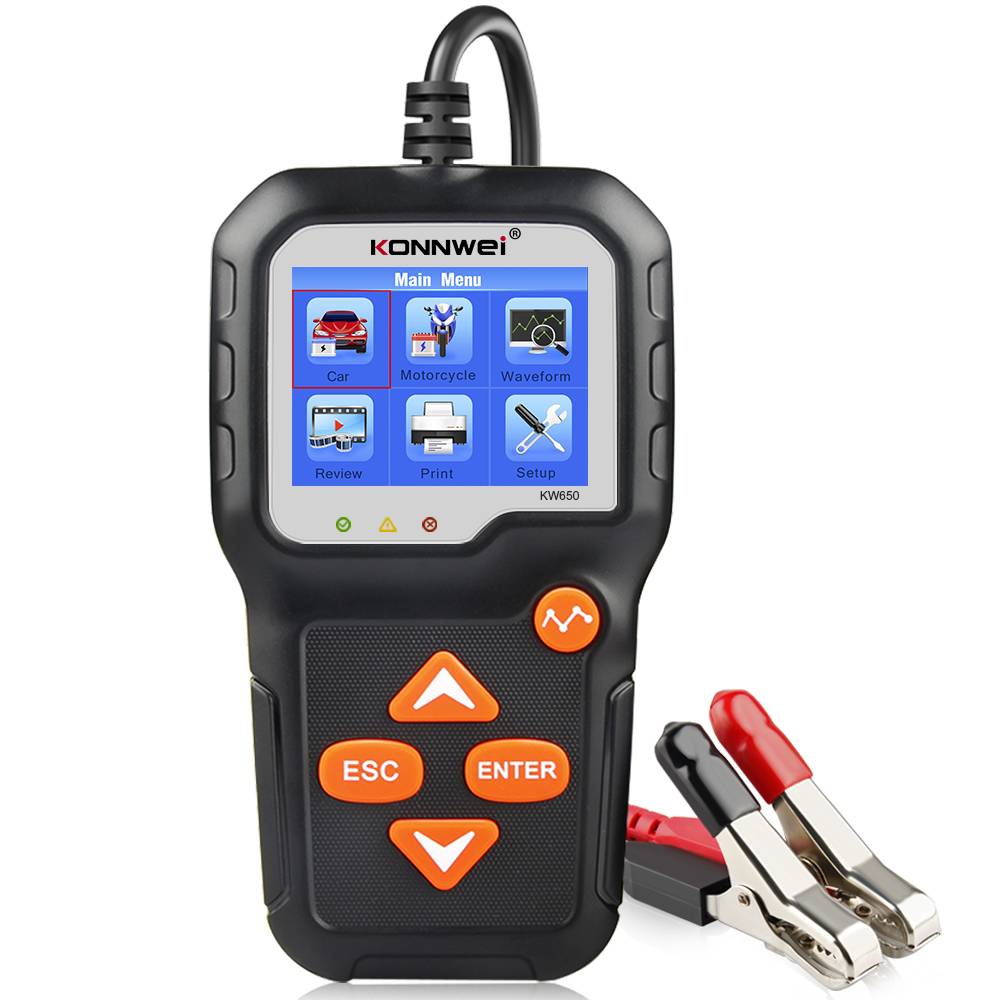 Автомобильный анализатор батареи KONNWEI KW650 12V работает гораздо быстрее и точнее, чем другие тестеры. Первоклассный STM-32 основной чип и с высоким уровнем точный усилитель откалиброван профессиональные устройства доставить вам надёжное результатов за считанные секунды!