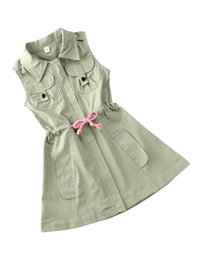 2020 Новая летняя одежда для малышей От 1 до 7 лет Детское платье на молнии с отворотом и карманами и кулиской для девочек, одежда без рукавов
