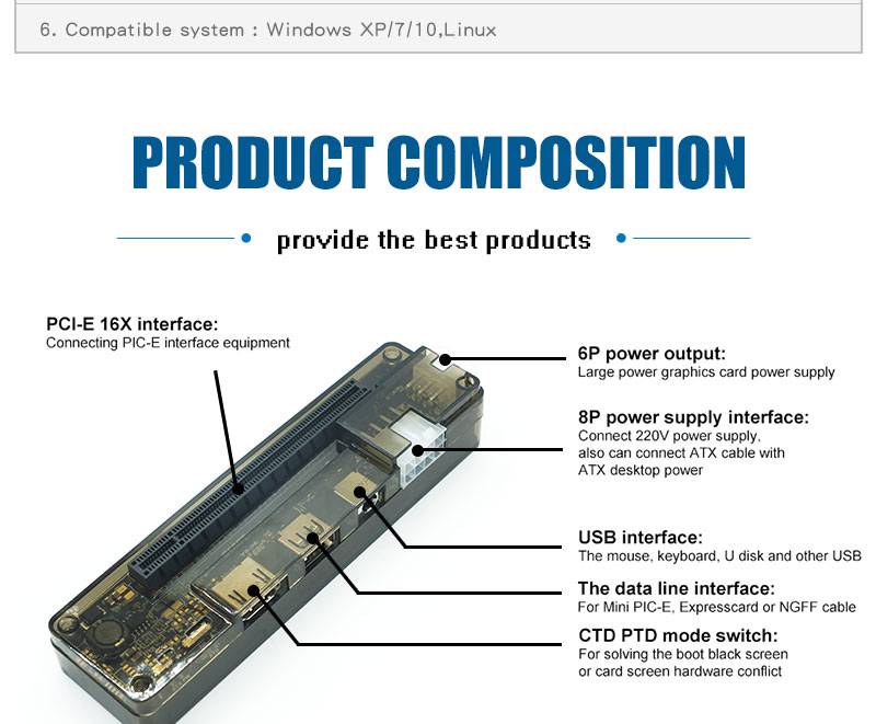 PCI-E GDC внешняя док-станция для видеокарты для ноутбука, док-станция для ноутбука (Mini PCI-E /NGFF M.2 A Key/версия интерфейса Expresscard)