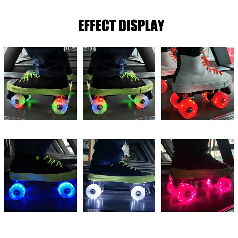 1. Мигание: светящиеся мигающие роликовые скейт колеса дадут вам большой визуальный опыт. Отлично подходит для дерева, бетона и внутренней плитки и т. Д. Поверхностей. Подходит для двухрядных роликовых коньков, скейтборда.