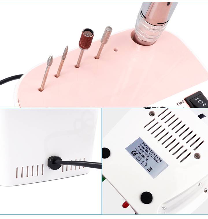 Тип: Профессиональная машина для сверления ногтей Номер модели: JM304 Размер продукта: 9 * 14,5 * 13 см Продукты G.W: 1200 г Идеальная скорость: 0-35000RPM Происхождение: Гуанчжоу, Китай Сертификат: CE Вход: 220 В, 60 Гц Цвет: розовый, черный, черный Мощность: 65 Вт Функция: Высококачественная машина для маникюра Особенность: Высокая мощность Обратное направление Прямое направление Стабильная производительность Защита от перегрузки
