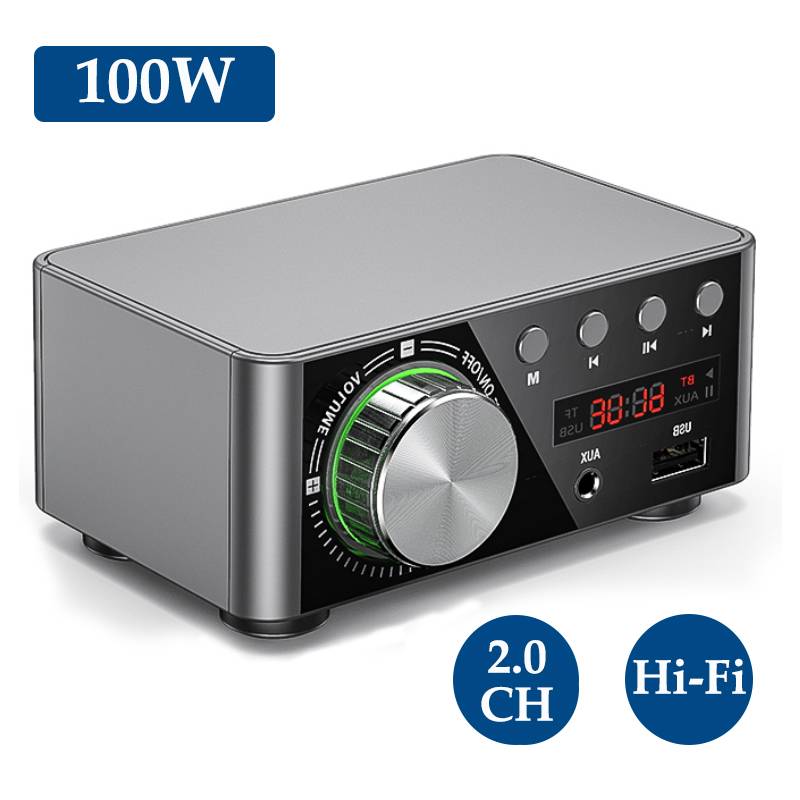 100 Вт Мощность --- BT стерео усилитель приемник обеспечивает 50 Вт + 50 Вт двухканальный стерео выход, сопротивление 4-16 Ом. С непревзойденным превосходством звука и позволяет наслаждаться высококачественным усиленным аудио.