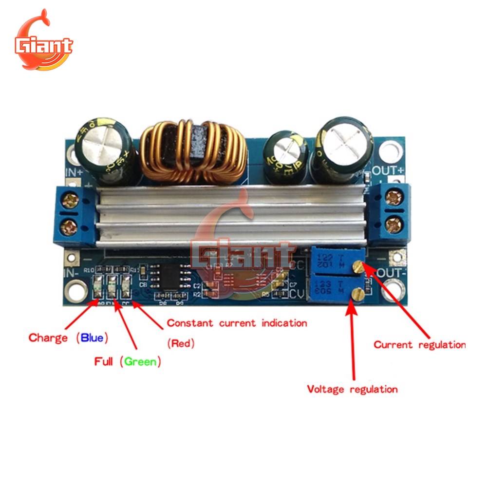 Отрегулируйте потенциометр постоянного напряжения CV на плавающее напряжение зарядки и настройте потенциометр постоянного тока CC на зарядный ток, ток уменьшается при зарядке, постоянный ток заряда превращается в постоянный заряд напряжения, синий светильник выключается, когда зеленый светильник включен, зарядка аккумулятора завершена.