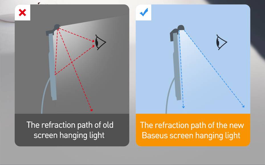 Baseus i-Вок экран подвесной светильник принимает асимметричный дизайн источника света, для освещения на рабочем столе, а не на экране. Нет бликов лучше для защиты глаз.