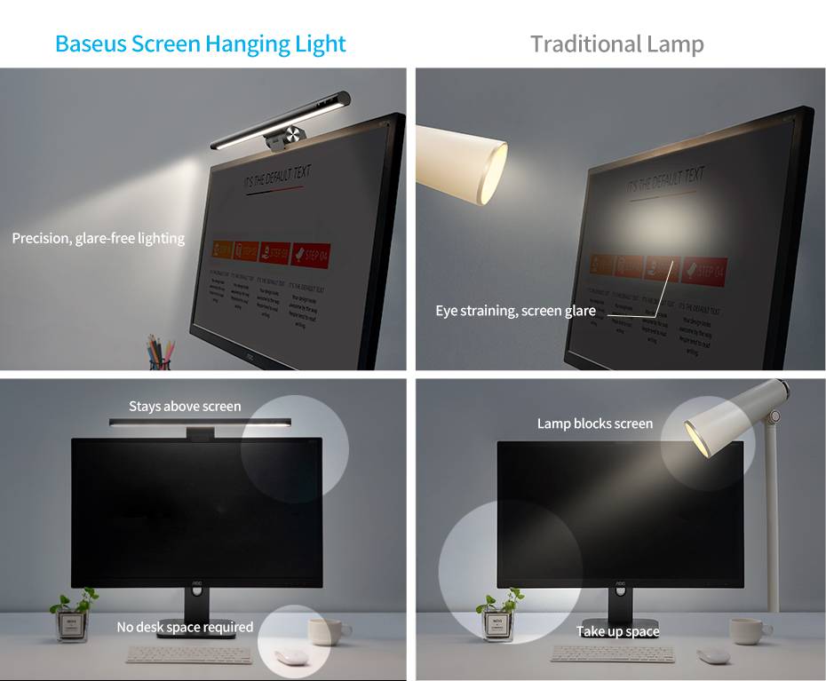 Асимметричная источник света распространяет свет вперед, чтобы подсвечивать для рабочего стола, вместо того, чтобы экран, уменьшения отражения экрана и бликов, без вреда для глаз при работе и играть в игры в темное время суток.