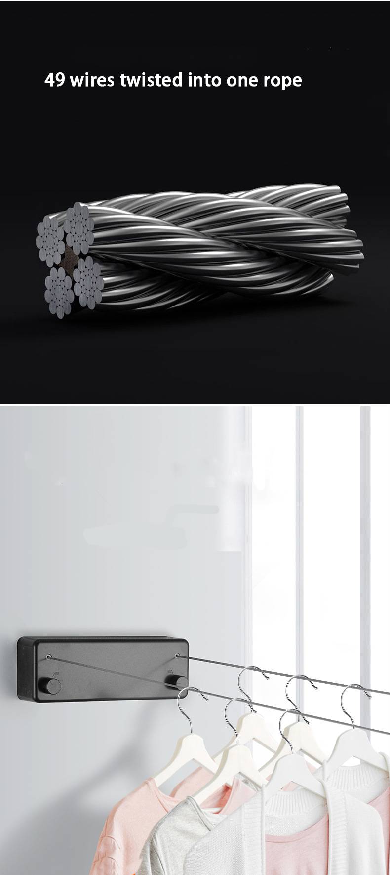 3. Материал-задняя крышка из нержавеющей стали + веревка из нержавеющей стали. Сделать одежду более стабильной d firm.ca n медведь около 20 кг на веревку. Он используется для сушки одежды, одеяла и других крупных предметов.