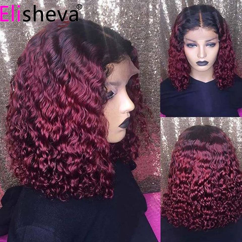 13x4 вьющиеся Синтетические волосы на кружеве парик человеческих волос Remy бразильский 2 тон Синтетические волосы на кружеве короткий парик 1B/271B/301B/99J фронтальной парик предварительно 180%