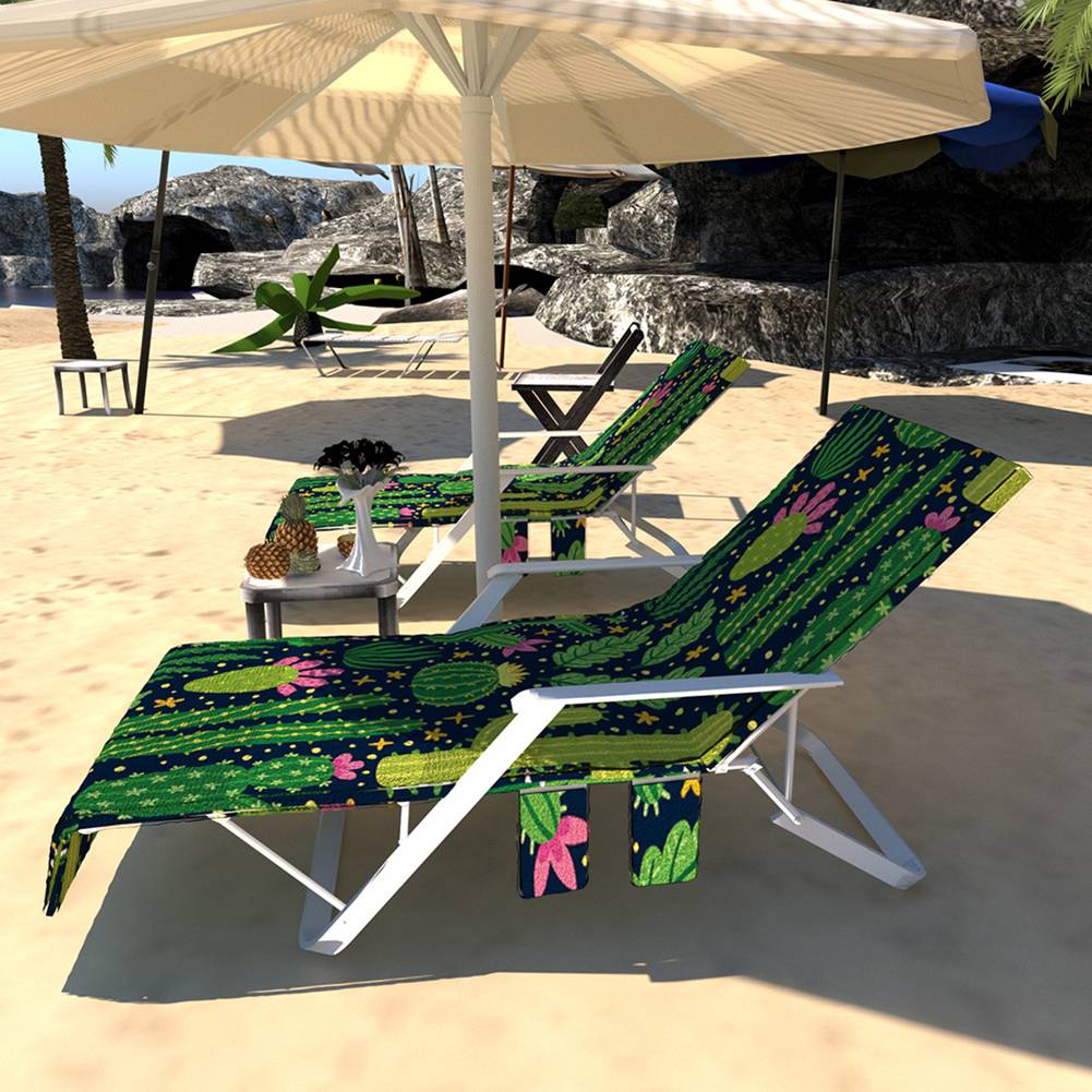 Полосатый кактус Фламинго пляжный чехол для кресла для отдыха полотенце с карманами