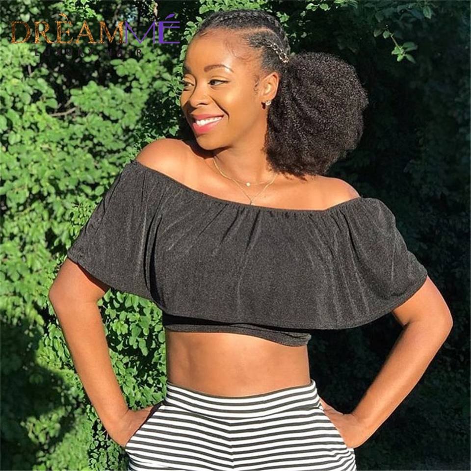 Brazilian Human Hair Drawstring Ponytail Extension Afro Kinky Curly Ponytail Human Hair Natural Hair Clip Ins Ponytail For Women