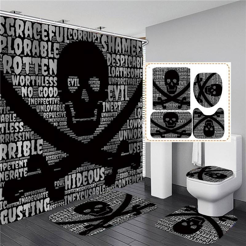 Черная занавеска для душа с рисунком черепа и скелета, комплект ужасных украшений для Хэллоуина, декор для ванной комнаты, коврик, крышка, ковер, крышка для туалета