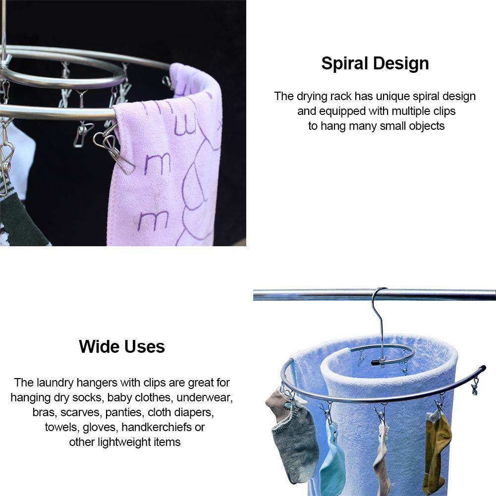1. Спиральная конструкция: сушилка имеет уникальный спиральный дизайн и оснащена несколькими зажимами, чтобы повесить много мелких предметов.