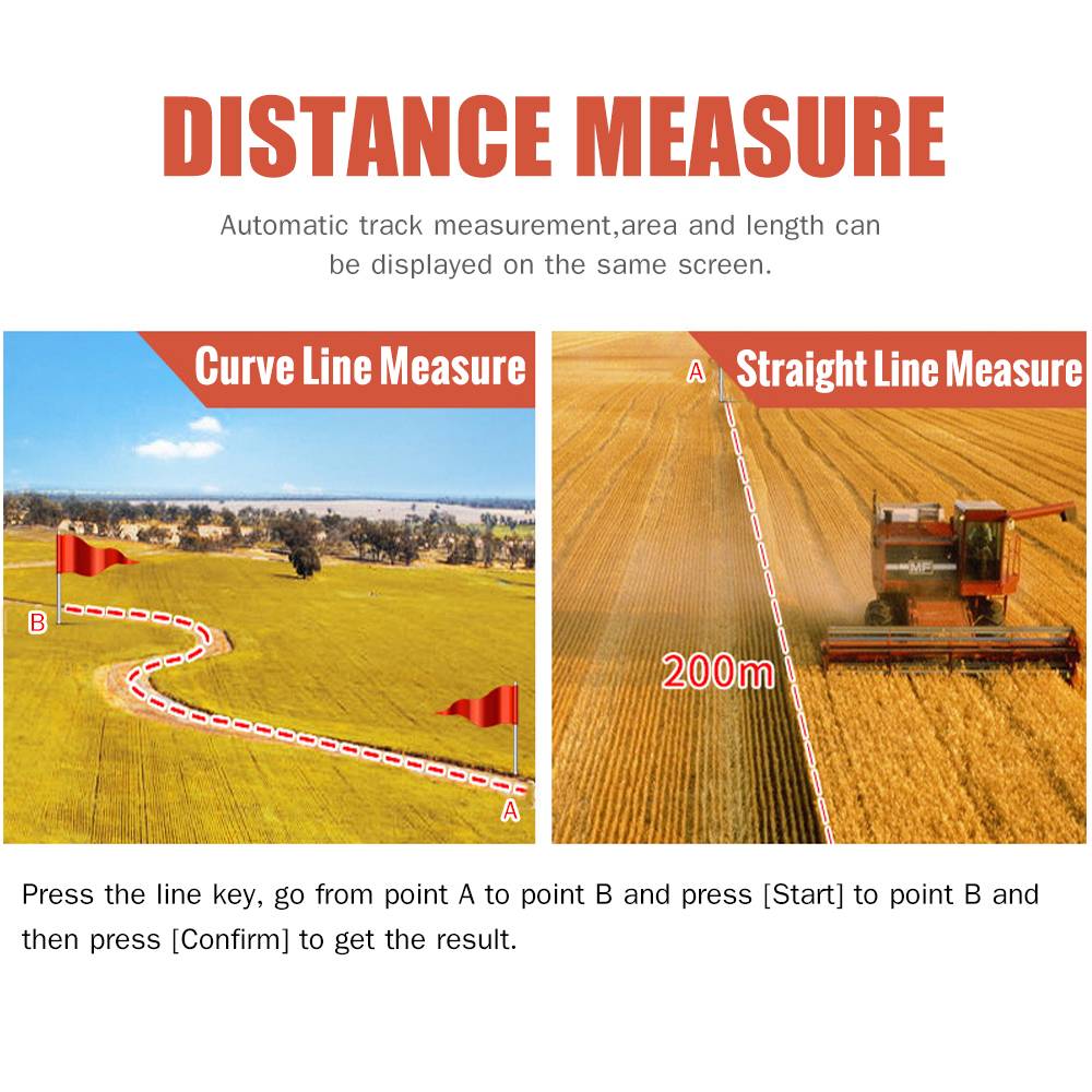 Режим многократного измерения--- Ручной фиксированный режим + автоматический режим измерения + режим измерения транспортного средства, поможет вам решить все виды измерений местности. Этот многофункциональный измеритель площади Земли может автоматически вычислить различные формы площади, а также для измерения расстояния кривой линии. Режим Slop, также называемый режимом Pythagorean, который может измерять высоту и угол наклона. Режим транспортного средства может помочь вам измерить расчет машина для жатки бегущего пути и расстояния.