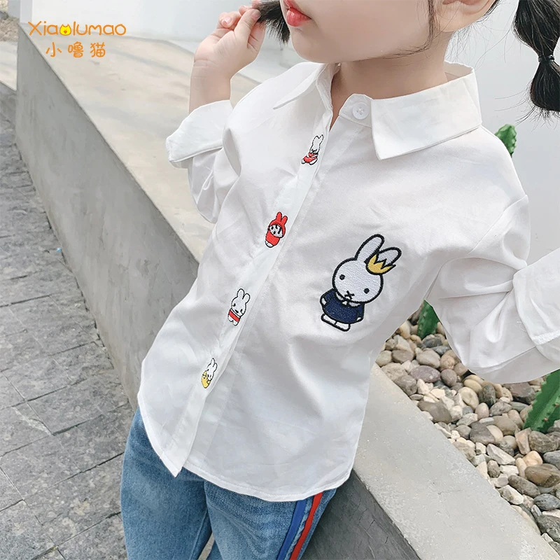 Белая блузка рубашки для девочек с принтом кролика, топы для девочек, От 3 до 8 лет школьная форма, блузка для девочек-подростков одежда tiktok
