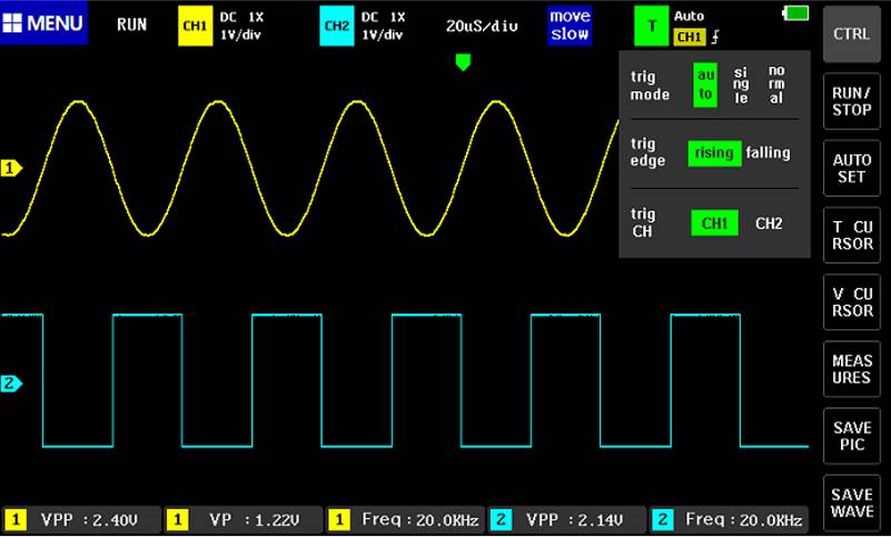 Он имеет 3 триггерных модуля, автоматический/Сигнальный/нормальный.