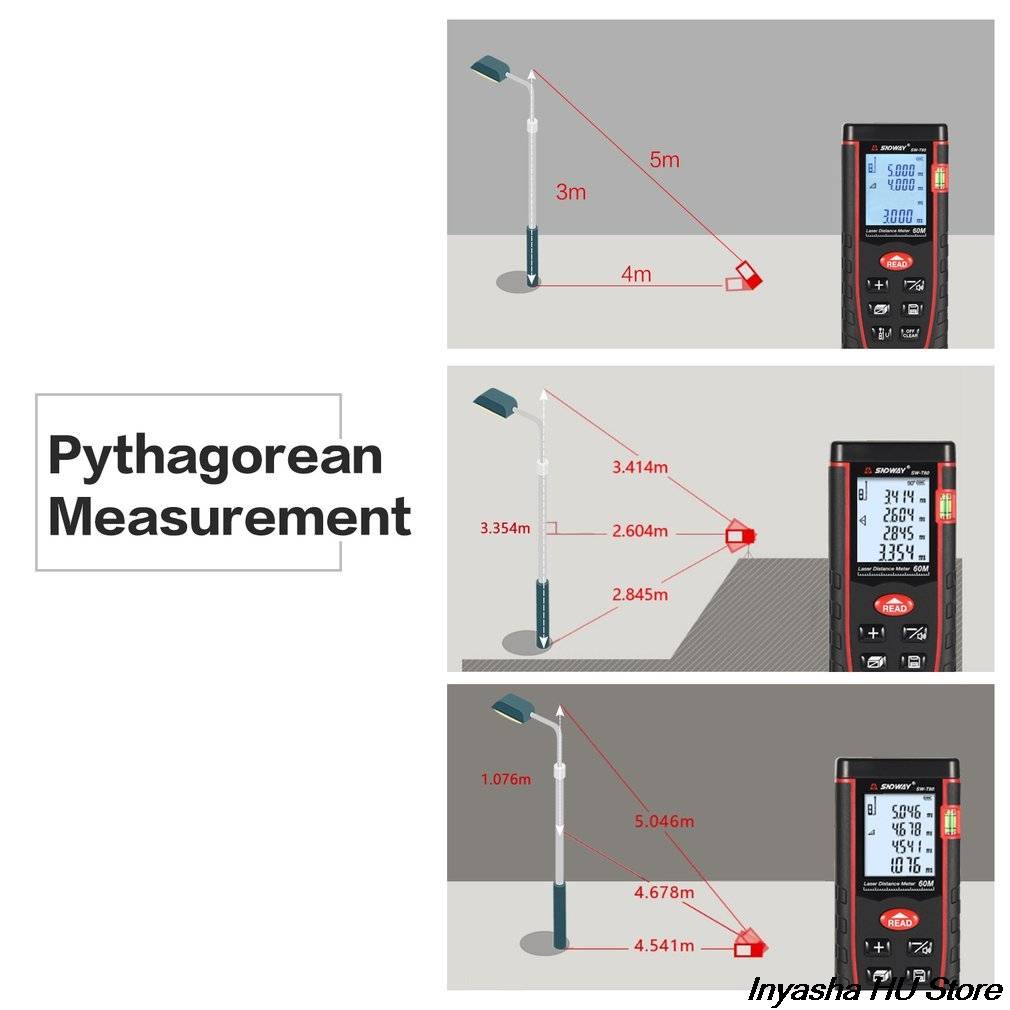 Этот лазерный дальномер SNDWAY разработан специально для измерения и расчета расстояния, площади, объема и Пифагора.