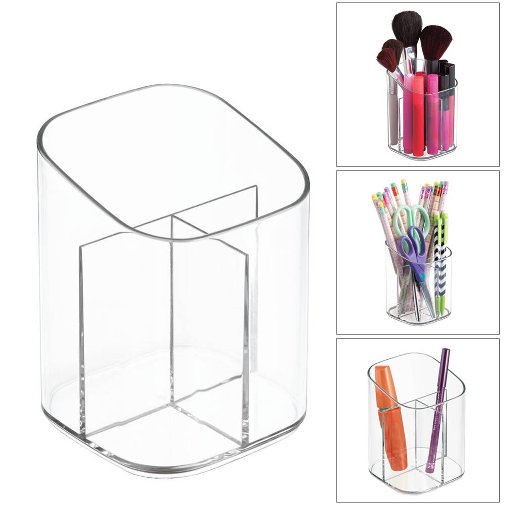 2. Наш акриловый держатель для карандашей разделен на 2 небольших отделения и 1 большое сравнение, он может вмещать не только больше кистей для макияжа, чем вы думаете, но также отлично подходит для упорядоченной сортировки канцелярских принадлежностей.
