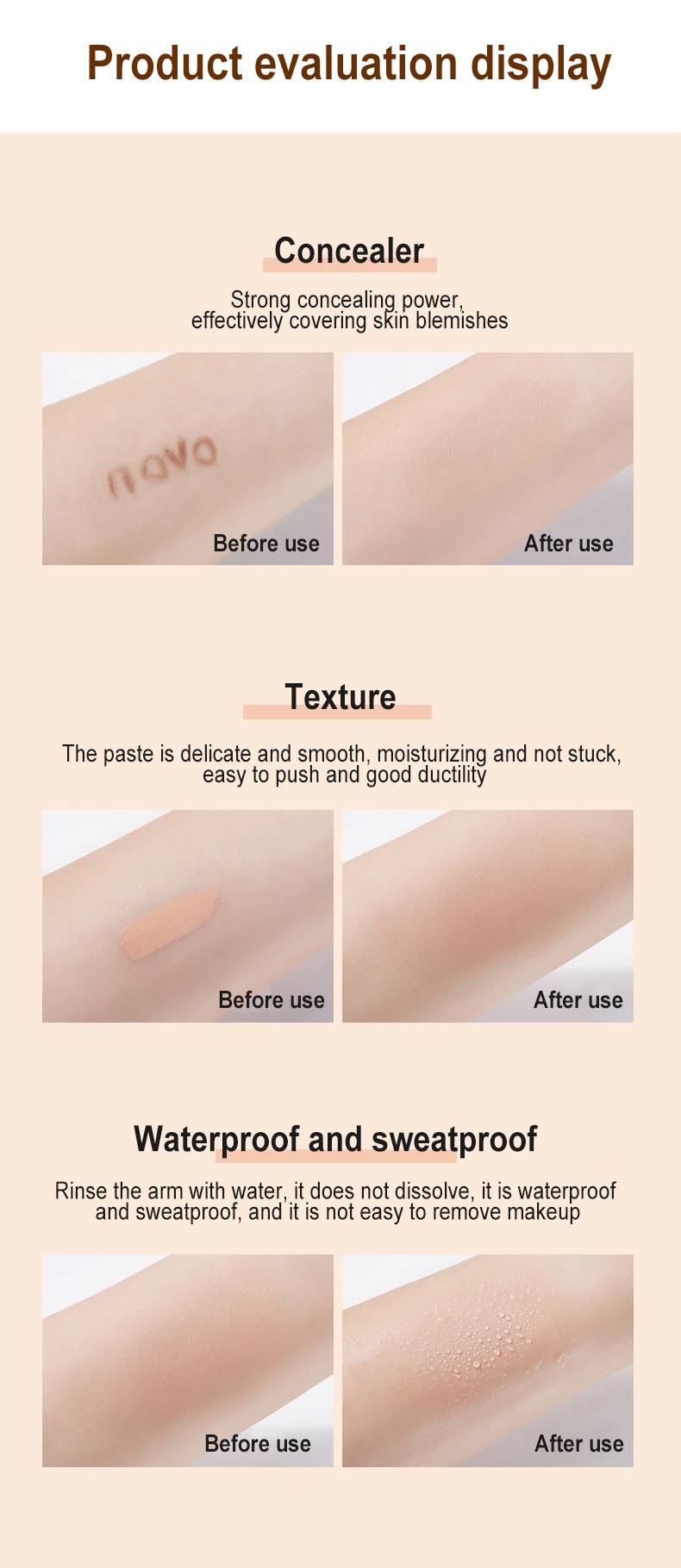 * Сильный охват, может скрыть красные и опухшие акне, темные круги, красные кровяные полосы, покрыть тусклые части кожи, осветить тон кожи и изменить контуры.