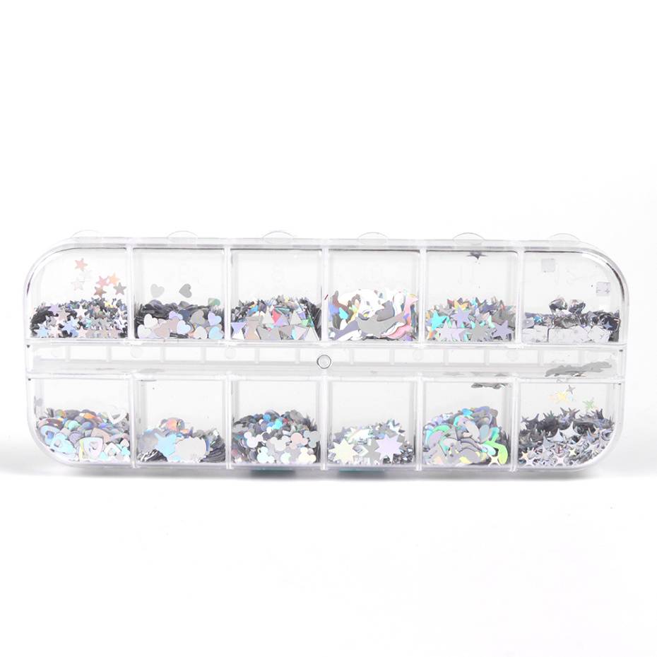 100% новый и высокое качество Nail Art Украшение из пайеток Легко наносится на натуральные или искусственные ногти Наименование товара: блестящий дизайн ногтей Посылка: 12 сетки/Чехол Брутто Вес: Approx.35g Форма: четыре остроконечные ногти/дельфины, медведи, музыкальные ноты, квадрат, взрывающиеся цветы и фейерверки, сердца, звезды, луна, треугольники Формы s аксессуары для ногтей Дизайн: голографические красочные хлопья Блестки Дизайн ногтей украшения Цвета: серебро, лазер, иллюзия, мерцание, флуоресцентный, хамелеон, супер вспышка, красный, желтый, синий, зеленый, розовый, фиолетовый, черный