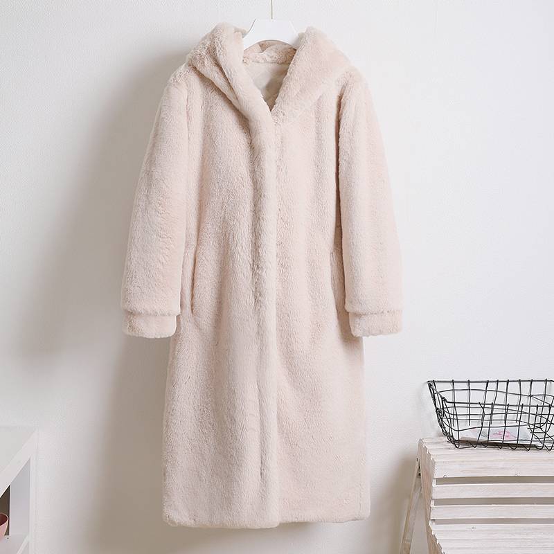 Женское пальто из искусственного меха норки Macaron, зимнее теплое однобортное пальто с капюшоном, повседневное мягкое пальтоUSD 55,75/Шт.