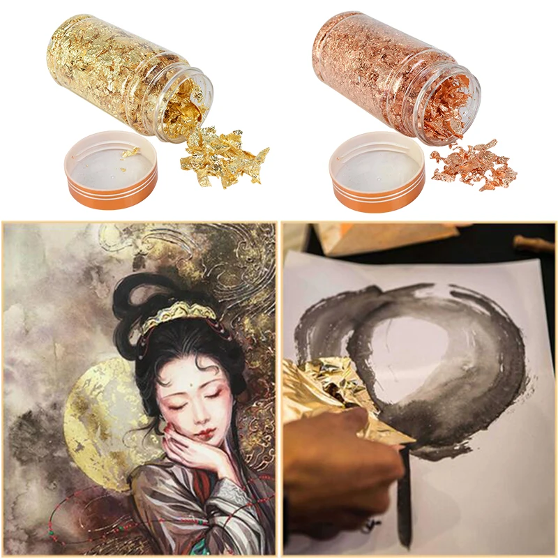 3g/bottle имитация золотого фольги хлопья медная Золотая Серебряная фольга разбитая отчужденность для скольжения художественных ремесел украшения для ногтей