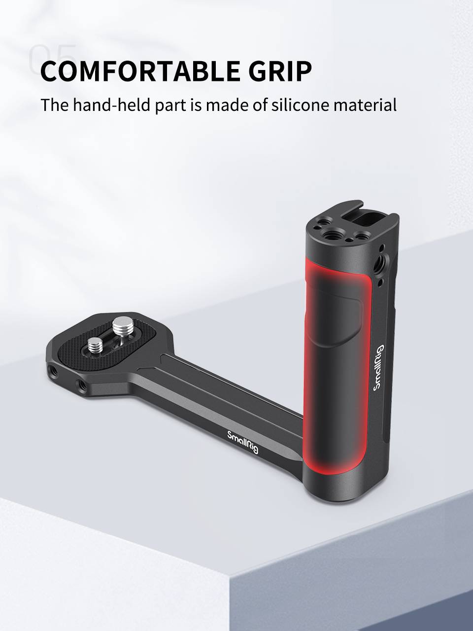 SmallRig Боковая ручка для DJI Ronin-S/SC/RS 2/RSC 2 & ZHIYUN CRANE 2/2S/V2 & MOZA Air 2/AirCorss 2 Gimbals 2786 Предназначен для уменьшения усталости рук и обеспечения крепления аксессуаров при съемке с помощью gimbals. Эта эргономичная ручка позволяет держать gimbals двумя руками, чтобы уменьшить нагрузку на вес одной рукой. Подключается к нижней части карданного шарнира через винты 1/4 " -20 или 3/8"-16 или комбинацию обоих. С несколькими резьбой 1/4 " -20, ARRI 3/8" -16 и холодной обувью для аксессуаров, таких как Крепление для монитора 2905 И 2903 Для монитора. Ручка совместима с оригинальным шарнирным штативом и пластиной камеры. Он может быть настроен для правой или левой руки на основе ваших потребностей. Отвертка с плоской головкой хранит в нижней части, чтобы закрепить Монтажный винт.