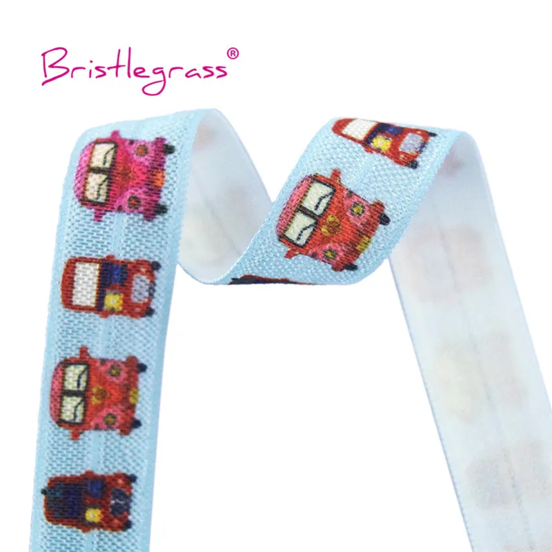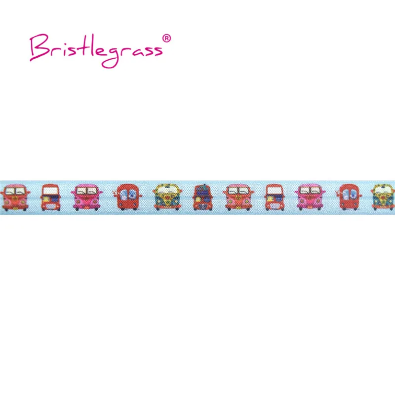 BRISTLEGRASS 100 ярдов в рулоне 5/8 "15 мм синий мультфильм автомобиль печати FOE Foldover эластичный спандекс атласная лента галстук для волос платье DIY шитье
