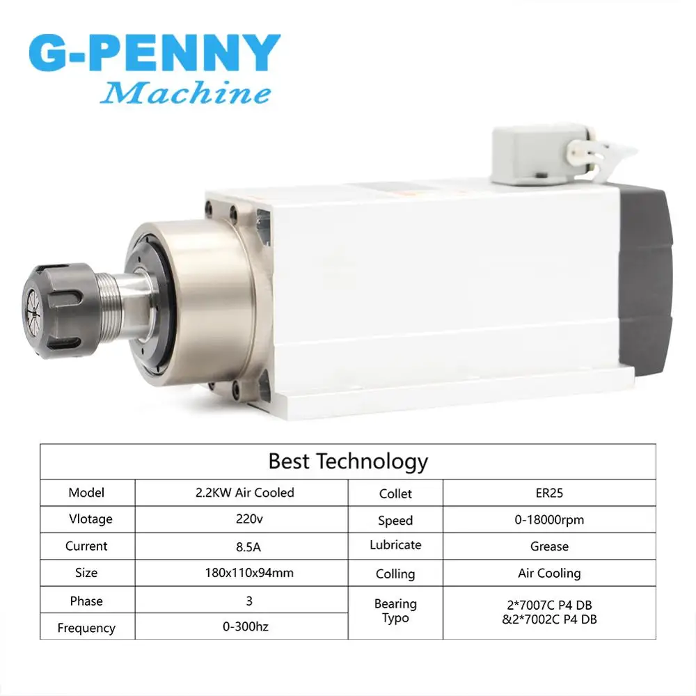 2.2 кВтER25Шпиндель с воздушным охлаждением, Цанговая гайка в диапазоне от 1 мм до 16 мм, лучше, чем Цанга ER20.