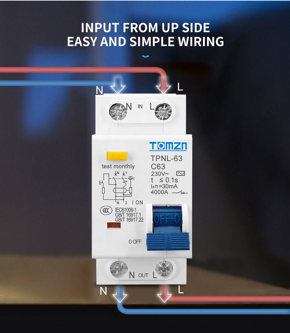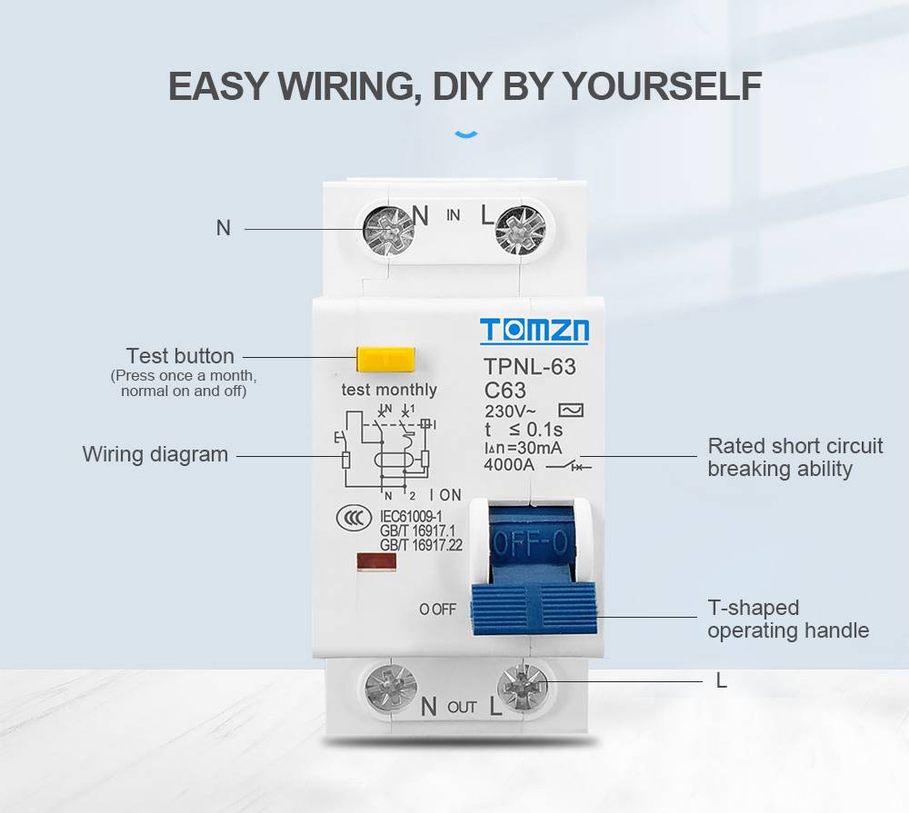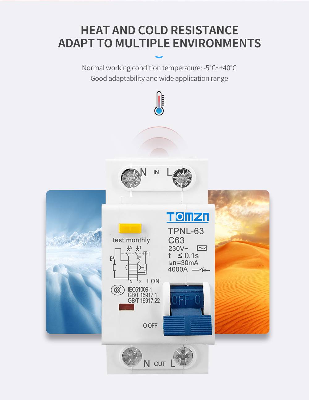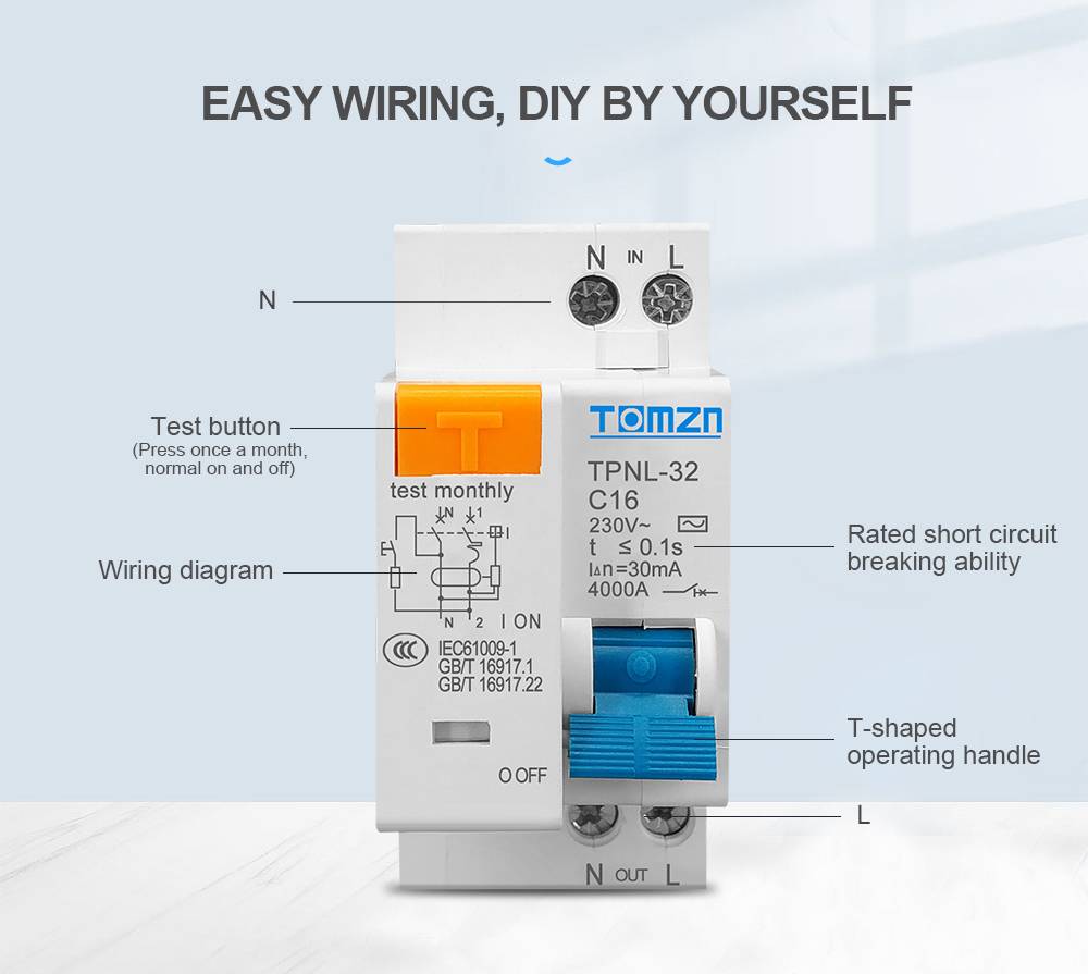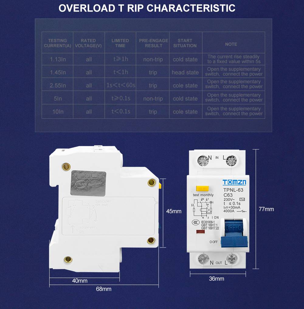 TPNL漏电保护断路器,TPNL漏电保护断路器(相线+中性线+ +过载电压)泄漏保护断路器用于单相住宅电路的交流50 hz / 60 hz,额定电压220 v,用作电子冲击保护。它可以保护公民电子电路过载和短路。本产品具有体积小、分断能力高零,和现场电线把同时都剪掉,也保护个人免受电击时livewire连接相反。