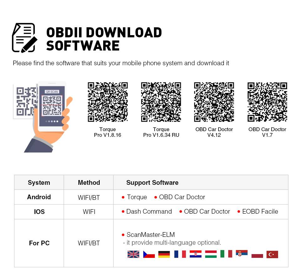 Здесь вы найдете устройство, совместимое с вашим ПК с ОС Windows или Android/iOS смартфона или планшета. Считывать и очищать варианты использования крутящий момент, OBD Car Doctor, тире команды EOBD и ScanMaster-подставка для рисунков мольберт из приложений.