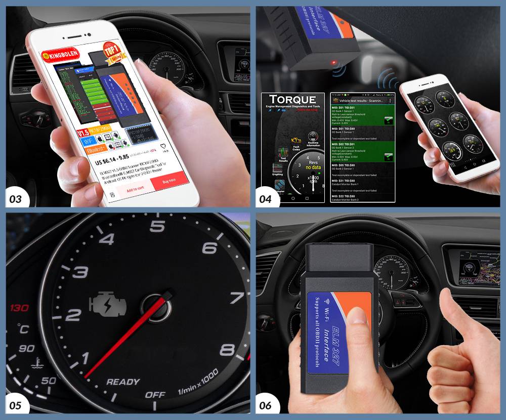 2. Пожалуйста, не оставляйте ELM327 только по дороге в том случае, если вы закончите диагностики работы. (Было бы легко повредить)